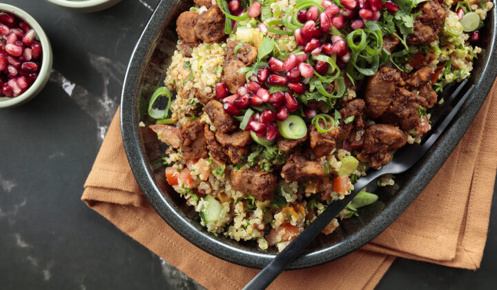 Raikas ja yrttinen tabbouleh saa herkullista ruokaisuutta tummasta MUU Fava™ palasta. Aromaattinen salaatti maistuu lounaalla ja vaikka juhlapöydässä.